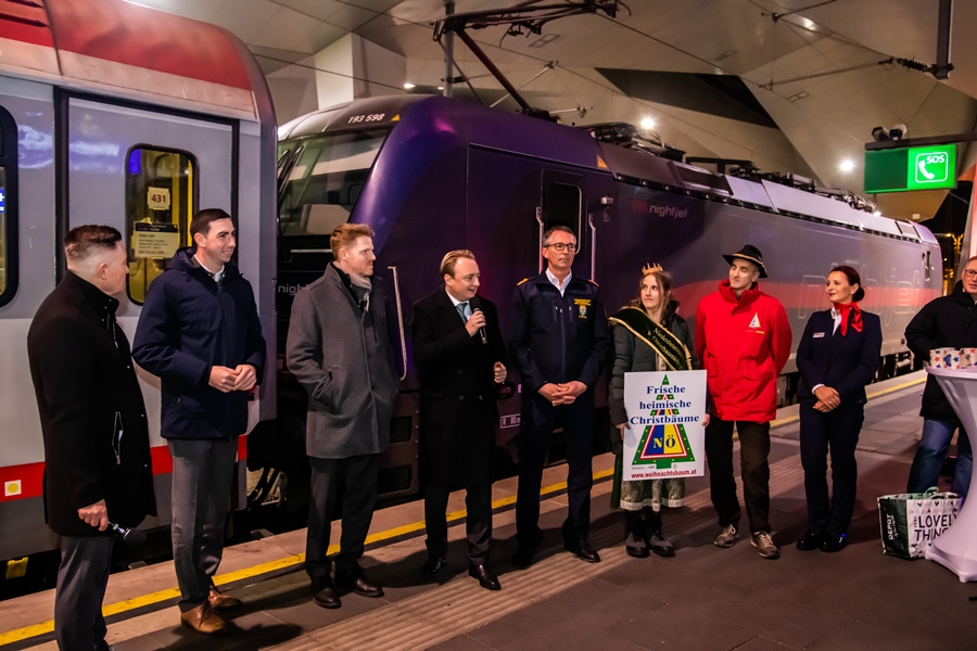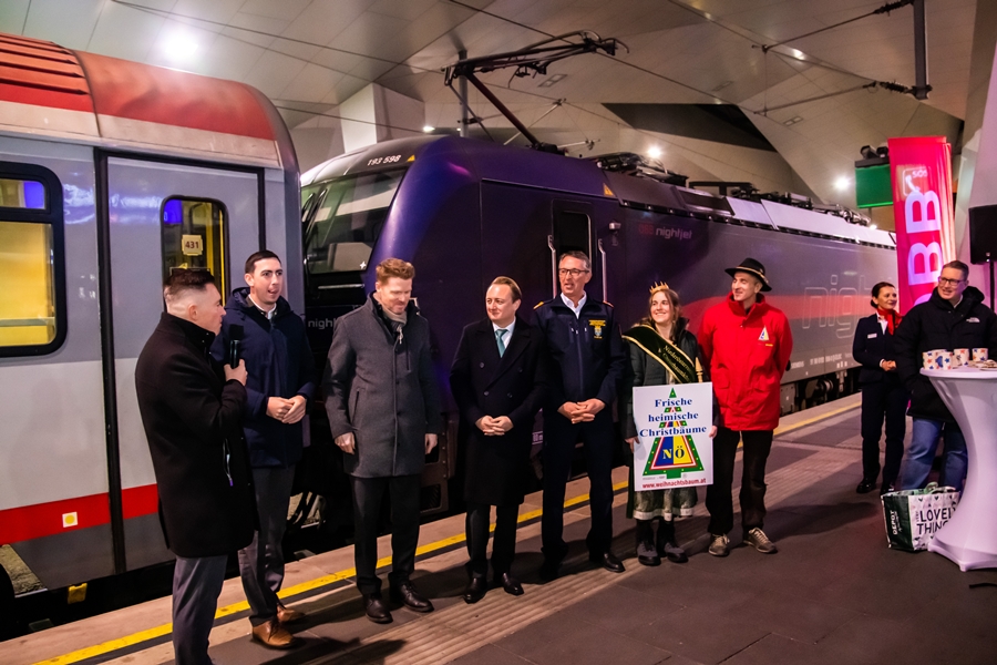 ÖBB - Österreichischer Weihnachtsbaum auf europäischer Mission - klimafreundlich mit dem Nightjet 2025